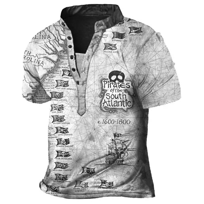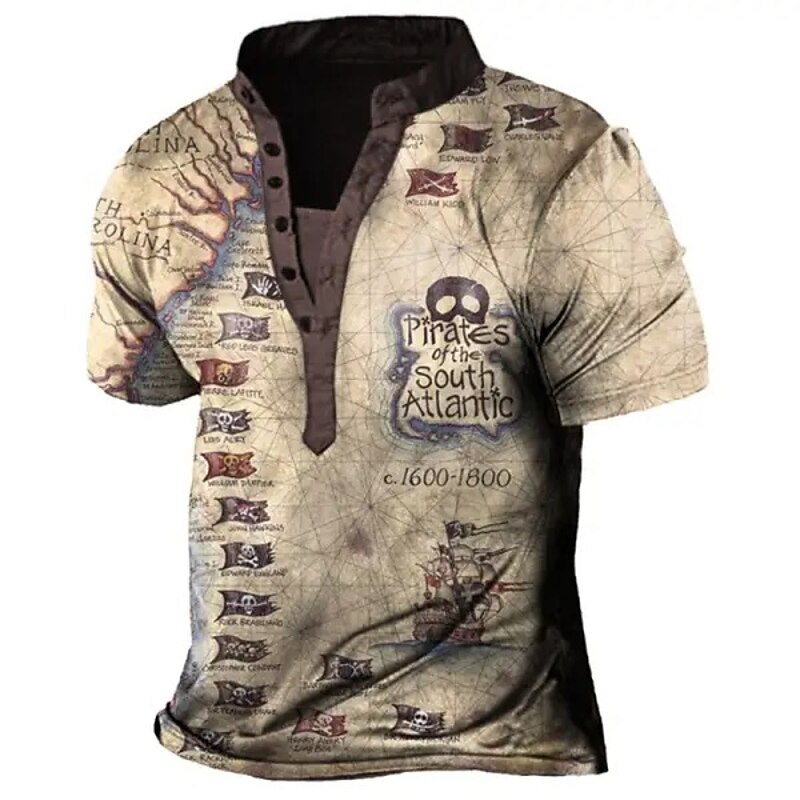 More information about Men's Graphic T Shirt Henley Shirt Tee Short Sleeve 3D Print Designer Basic Casual Outdoor Daily Sports Summer Yellow Blue / White Brown Coffee Blue+Blue Stand Collar Henley T-Shirt