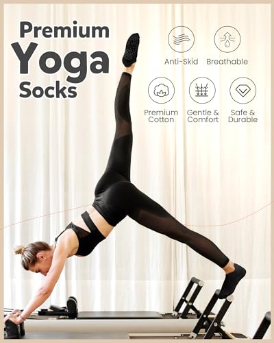 • Full Sole Non Slip Silicone Grips: non slip grippy socks have sticky transparent silicone anti skid dots at the bottom, which can provide strong grips on hardwood floors, tile floors, gym floors or Pilates equipment to improve stability and balance, so that you can better control your body movements