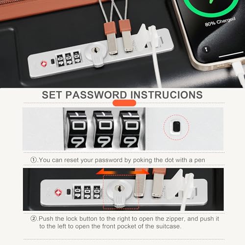 • Stay powered up on-the-go with the carry on luggage featuring convenient USB and Type C dual ports for charging your devices. The built-in mobile power supply cable in the front pocket means you can keep your power bank safely stashed away. Perfect for storing 12.5-inch laptops, iPads, power banks, wallets, and more in the front compartment for easy access wherever you are.