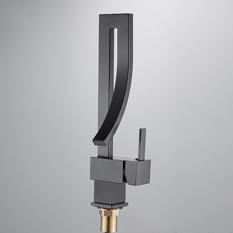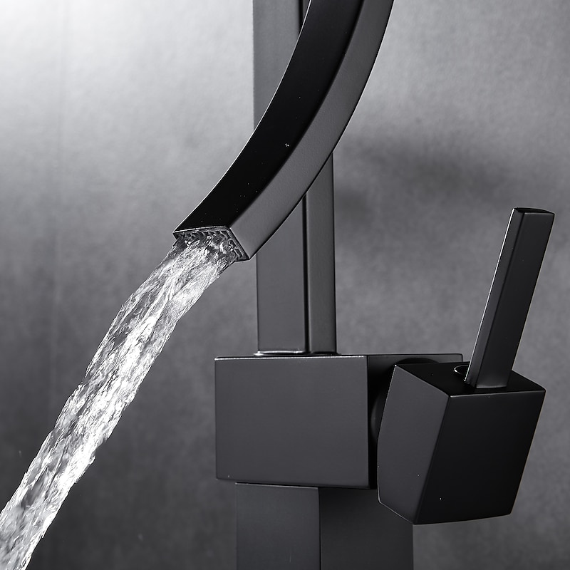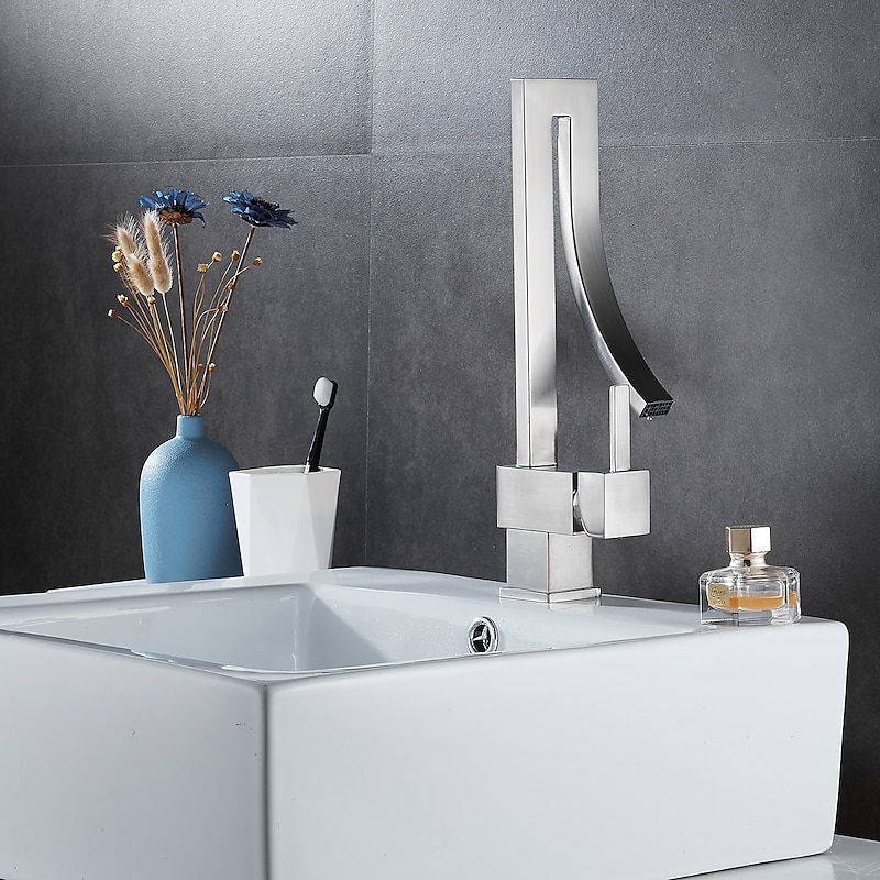 HOT ! Waterfall Bathroom Sink Mixer Faucet, 360 Rotating Basin Vessel Tap Single Handle Irregular Creative Design Brushed Nickel/Chrome/Matte Black/Golden Sink Tap with Hot and Cold Water Hose