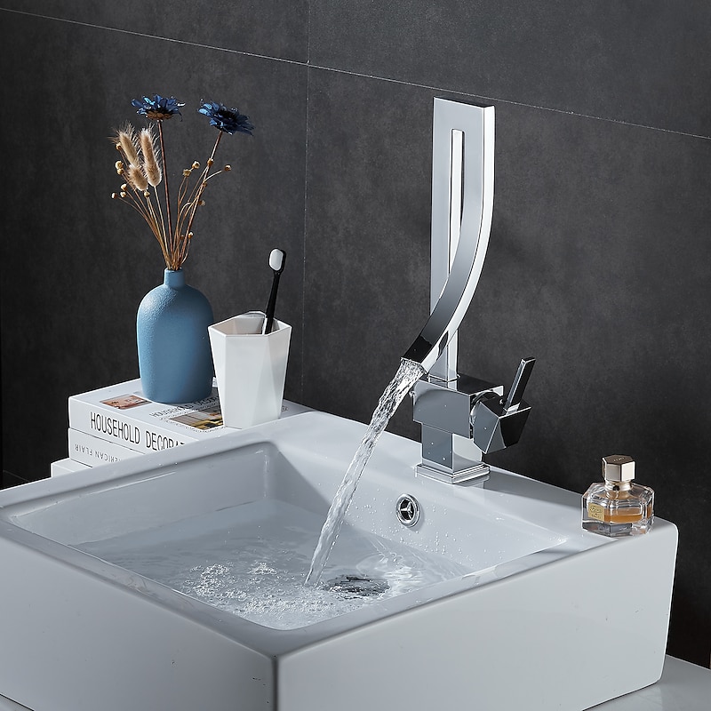 Highlights With a creative and fashionable design, this single-hole deck-mounted waterfall spout bathroom sink faucet brings an angular, modern and bold look to your bathroom. The single handle offers easy operation on controlling the water temperature and flow. It is absolutely stunning and designed to attract lots of attention thanks to its unique shape and waterfall spout. Turn water on, it will send a sheet of laminar water and make a waterfall statement. Constructed from solid brass for durability and reliability. Features a waterfall spout design that delivers a gentle cascade. Suitable for single-hole sink mounting. All mounting hardware and hot/cold waterlines are included. CEC Registered Product : This product is CEC certified that meet specific standards for water saving. CEC certification is an appliance efficiency regulation implemented by the California Energy Commission in the United States. The purpose of this regulation is to improve the efficiency of power products, save energy, reduce gas emissions and the greenhouse effect. Note: Dear buyer, if the parcel is found to be badly damaged, please take a photo, reject it and contact us for resolution. Because of the size measurements are handmade, so there may be 1-3CM error. Please understand because of the light irradiation or computer display difference, so I can't guarantee photos and real color is 100% the same.