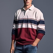 More information about Men's Striped Rugby Polo Shirts Long Sleeve Polo Shirts Zip Casual Outdoor Casual Daily Streetwear 3D Print Fall & Winter Wine Red Navy Blue