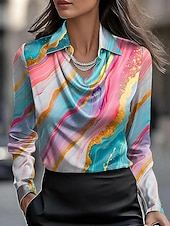 More information about Women's Shirt Graphic Abstract Marble Elegant Stylish Casual Long Sleeve Cowl Neck Regular Tops Work Party Evening Wear Daily Ruched Draped Pink Blue Purple Green Summer Spring Fall