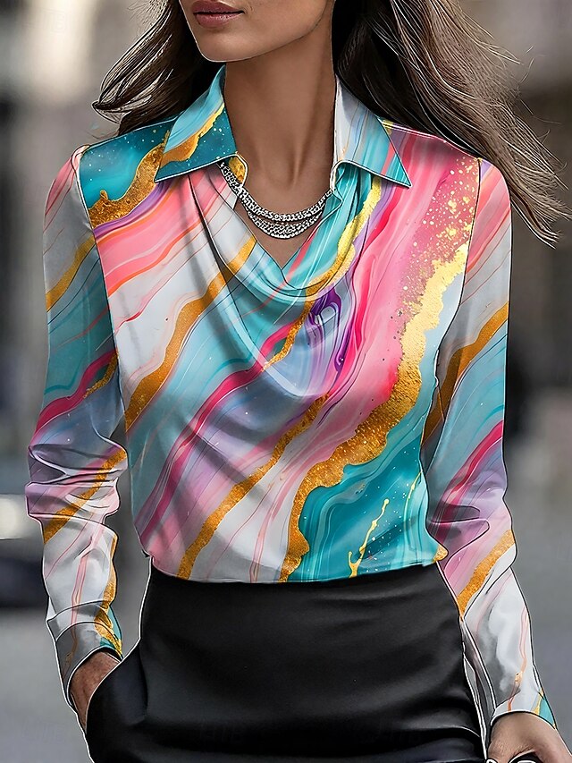 HOT ! Women's Shirt Graphic Abstract Marble Elegant Stylish Casual Long Sleeve Cowl Neck Regular Tops Work Party Evening Wear Daily Ruched Draped Pink Blue Purple Green Summer Spring Fall