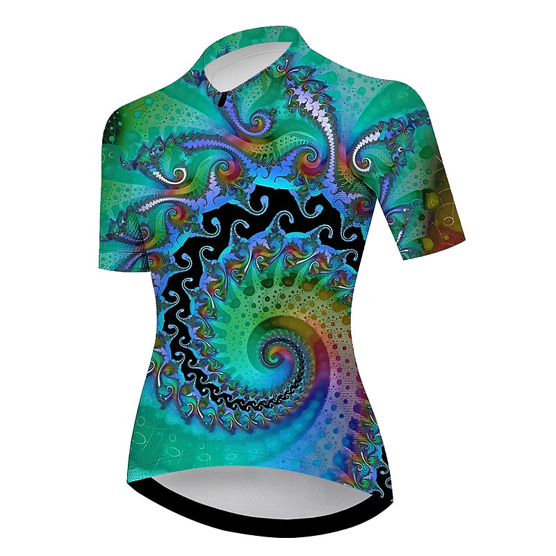 Women's Cycling Jersey Graphic Short Sleeve Bike Jersey Top with 3 Rear Pockets Mountain Bike MTB Road Bike Cycling Quick Dry Reflective Strips Back Pocket Moisture Wicking Sports Violet Green 9