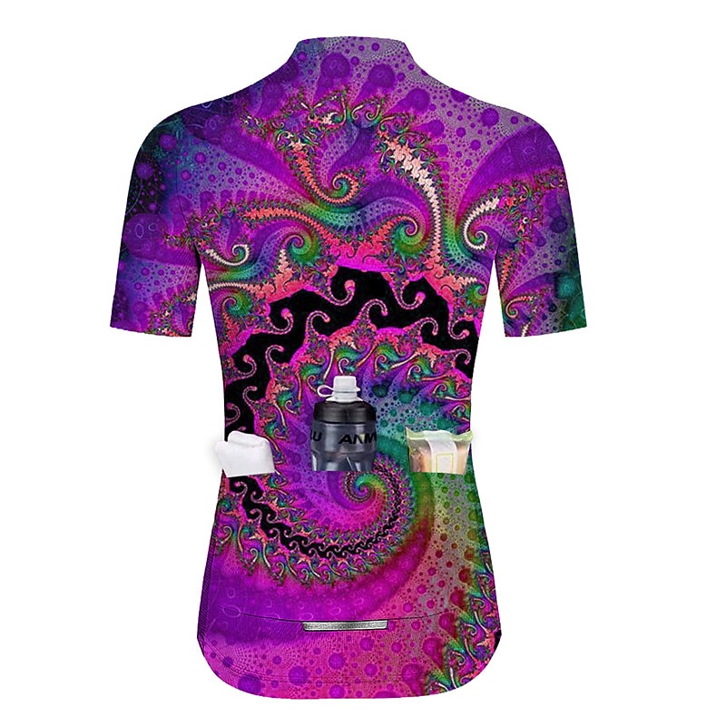 Women's Cycling Jersey Graphic Short Sleeve Bike Jersey Top with 3 Rear Pockets Mountain Bike MTB Road Bike Cycling Quick Dry Reflective Strips Back Pocket Moisture Wicking Sports Violet Green 5