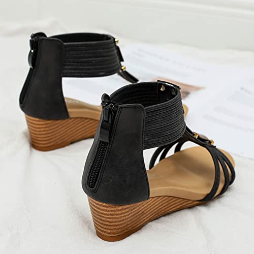 Sandals Slope Heeled Sandals for Women Wearing Thick Soled Sandals with Back Zipper Sandal(A,40) 5