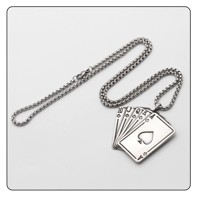 HOT ! Punk Rock Stainless Steel Playing Card Poker Pendant Necklace