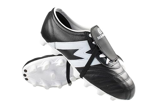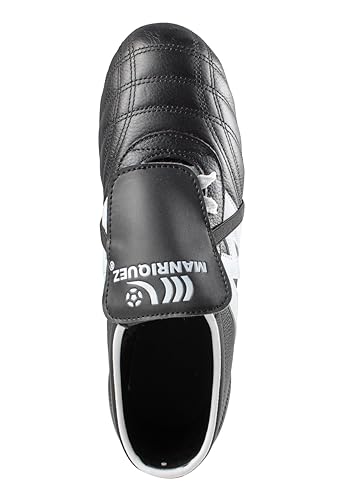 Manriquez Professional Soccer Cleats MID SX, Genuine Leather, Black and White, Firm Ground 6