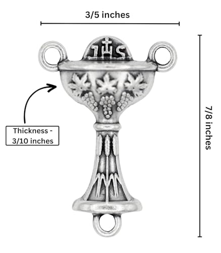 More information about Pack of 10 - First Holy Communion Chalice Sacrament Rosary Center Piece Rosary Connector, 7/8" Silver Oxidized - Made in Italy