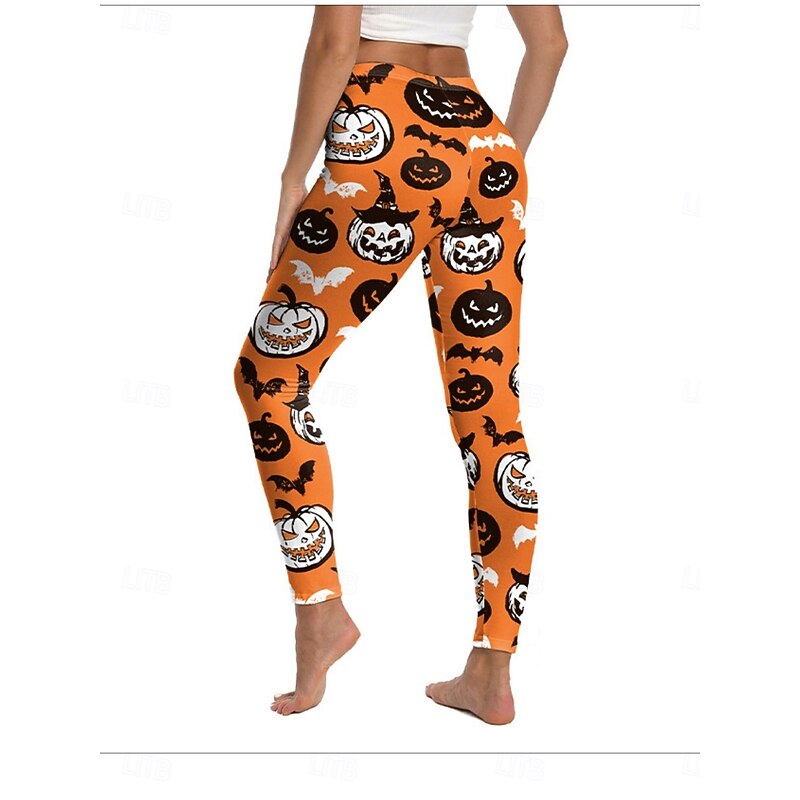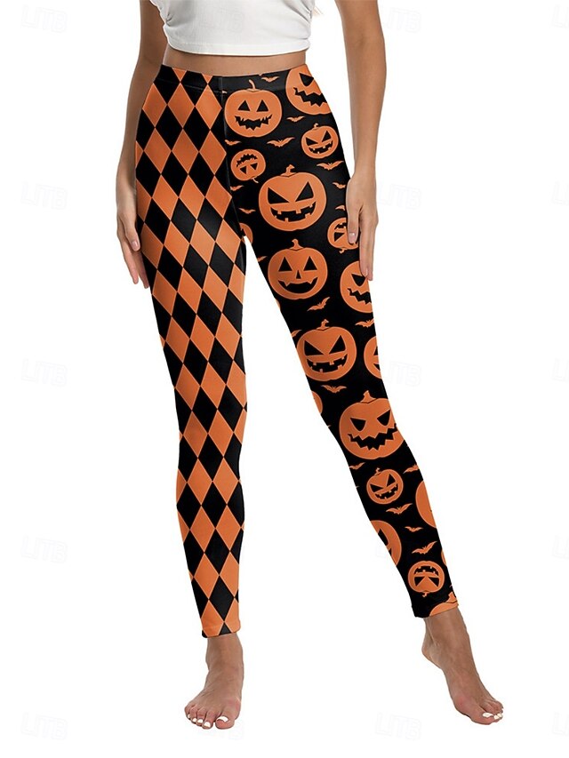 More information about Women's Leggings Punk Streetwear Full Length High WaistPantsHalloween Pumpkin Print Breathability Soft Comfortable High Elasticity Vacation Party Black White Yellow Orange Fall Winter Regular Fit