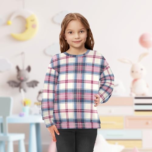 Little Boys Girls Classic Plaid Long Sleeve Crewneck Pullover Fleece Lined Kids Sweatshirt Lounge Outfits 4