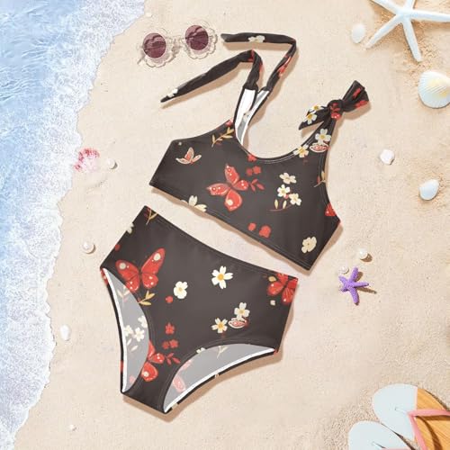 KLL Embroidery and Rhinestones Small Red Butterfly Girls Two Piece Bikini Sets Quick-Dry Swimsuits Swimwear Adjustable Strap 4
