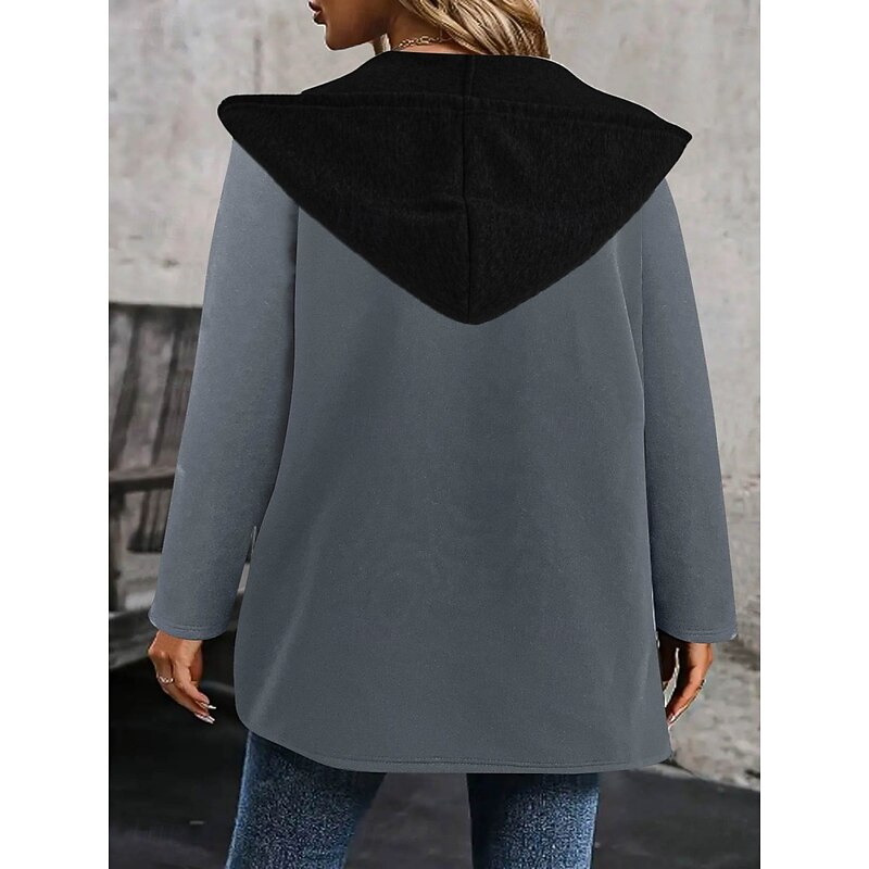 More information about Women's Casual Jacket Hoodie Jacket Comfortable Breathable Patchwork Casual Plain Vacation Street Casual Daily Wear Open Front Regular Hoodie Regular Fit Long Sleeve Outerwear Black Gray Spring Fall