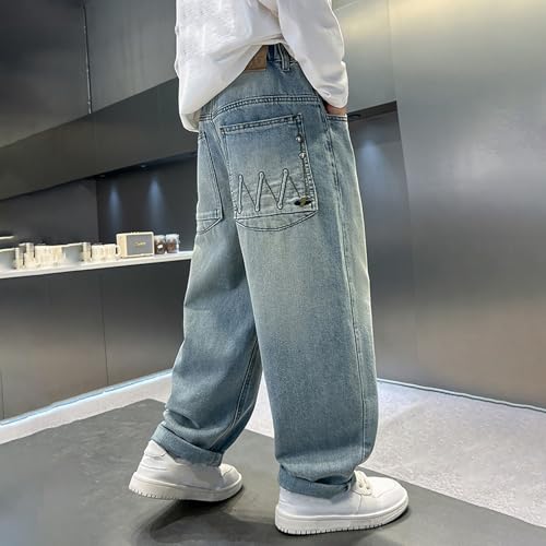 More information about Boy's Baggy Jeans Y2K Wide Leg Straight Denim Pants Kids Casual Elastic Waist Loose Trousers Pockets Streetwear 4-14T