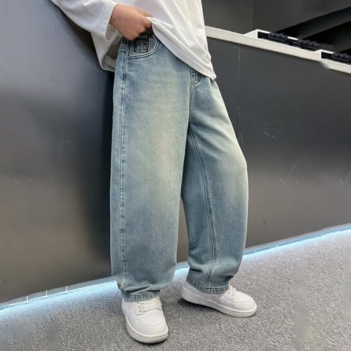 Boy's Baggy Jeans Y2K Wide Leg Straight Denim Pants Kids Casual Elastic Waist Loose Trousers Pockets Streetwear 4-14T 7