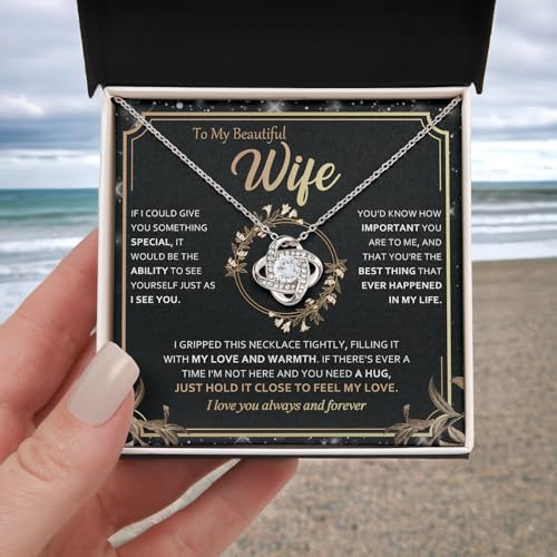 To My Wife Necklace from Husband - Unique Anniversary & Birthday Gift Ideas, Romantic Love Knot Jewelry for Best Wife, Soulmate Present, Beautiful Wifey & Badass Future Wife Wedding, Mothers Day Gifts 2