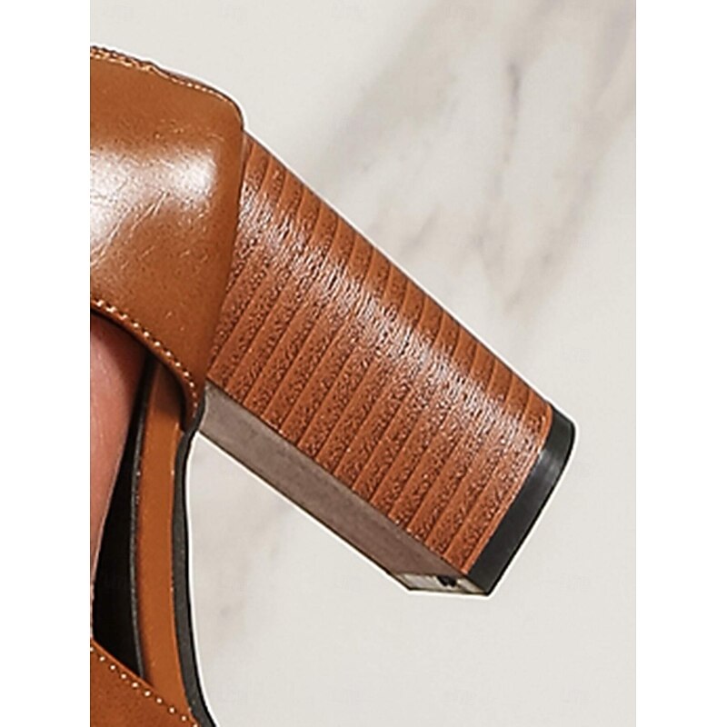 Contemporary Chunky Heel Sandals - Chic Faux Leather Peep-Toe Booties with Cutout Details, Perfect for Office and Daily Outings 11