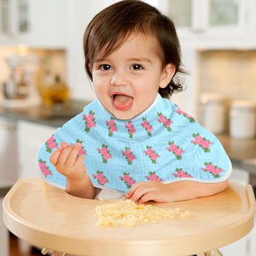 HOT ! Pink Roses Polka-dots Muslin Baby Burp Cloths - Super Absorbent and Soft Burping Rags - Cotton Burp Clothes Set for Boys and Girls, 1 Pack