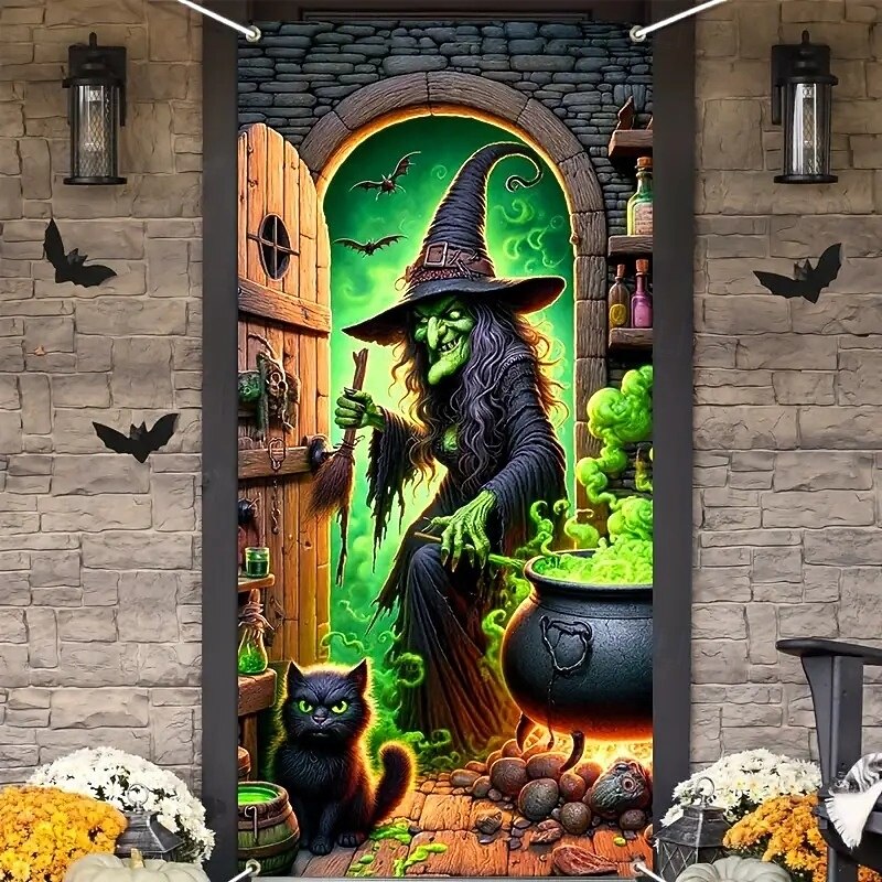 HOT ! Halloween Door Decorations Halloween Door Covers Skeletons Pumpkin Door Tapestry Door Curtain Decoration Backdrop Door Banner for Front Door Farmhouse Holiday Party Decor Supplies
