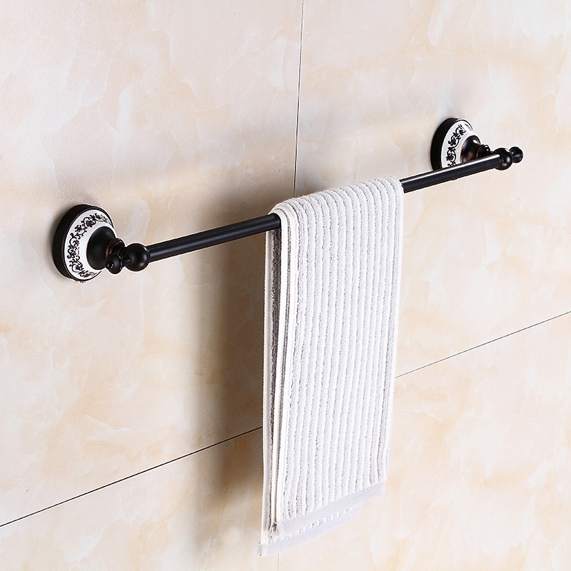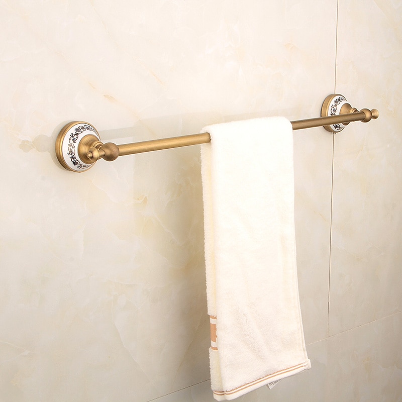 Multifunction Brushed Brass Towel holder Antique Brass and Ceramic Printing Bathroom Shelf Single Rod Wall Mounted Electroplated 1