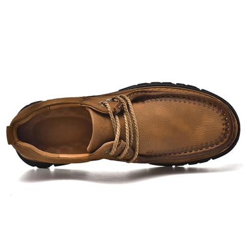 Men's Thick Bottom Leather Loafer,Hand Stitching Comfort Non-Slip Casual Walking Sneakers,Hiking Driving Outdoor Work Office Dress Shoes 4