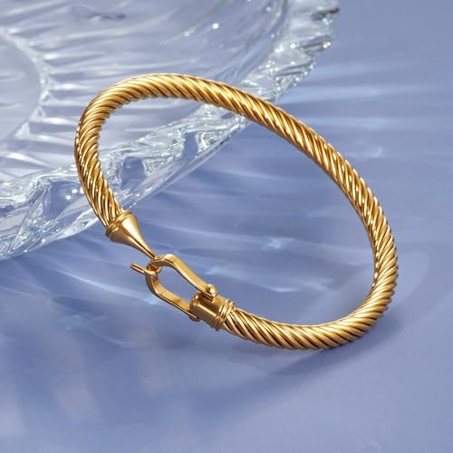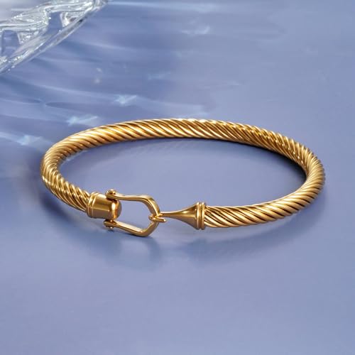 • Unique Design: GREENIO Jewelry twisted cable wire cuff bangle bracelet classic style with hook clasp design, can be worn alone or layered with other accessories.