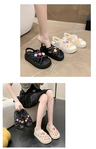 Cute Slippers for Women, Summer Fashion, Thick Anti-Slip Sole, Floral Decor, Indoor-Outdoor Beach Sandals for teen girls 6