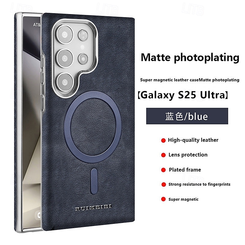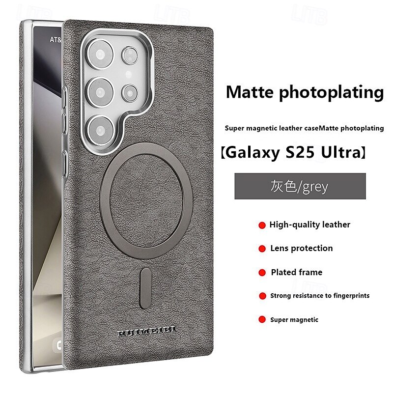 HOT ! Phone Case For Samsung Galaxy S25 Ultra Plus S24 Ultra Plus S23 Ultra Back Cover Support Wireless Charging Shockproof Retro TPU PU Leather