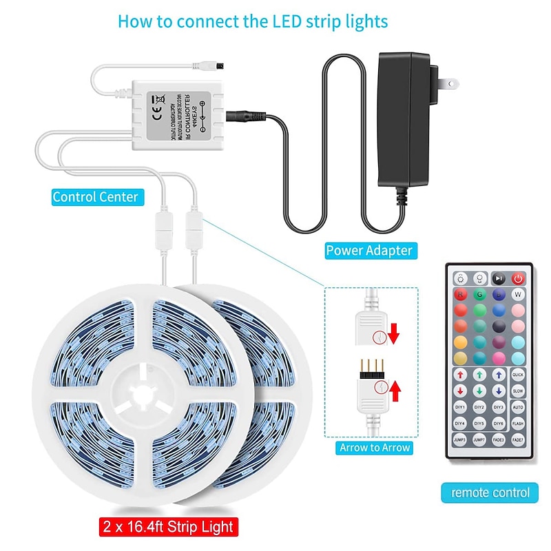 Highlights - SMD5050 LED strips offer a wide variety of light source colors, including Red, Green, Blue, White, Orange, Pink, Purple, Yellow, and more. - The remote control should be aimed directly at the receiver and used within 3 meters for optimal performance. - When it comes to wiring LED strip lights, it is important to wire them to the transformer in parallel for longer lengths (more than 5 meters). - We offer multiple options for power adapters, so please choose carefully before placing your order. - Our LED strip lights are certified by RoHS and CE, have an IP65 rating for waterproofing, and can be controlled through remote control, IR, or button. - Our Tiktok LED Strip Lights are a standout feature of these products.
