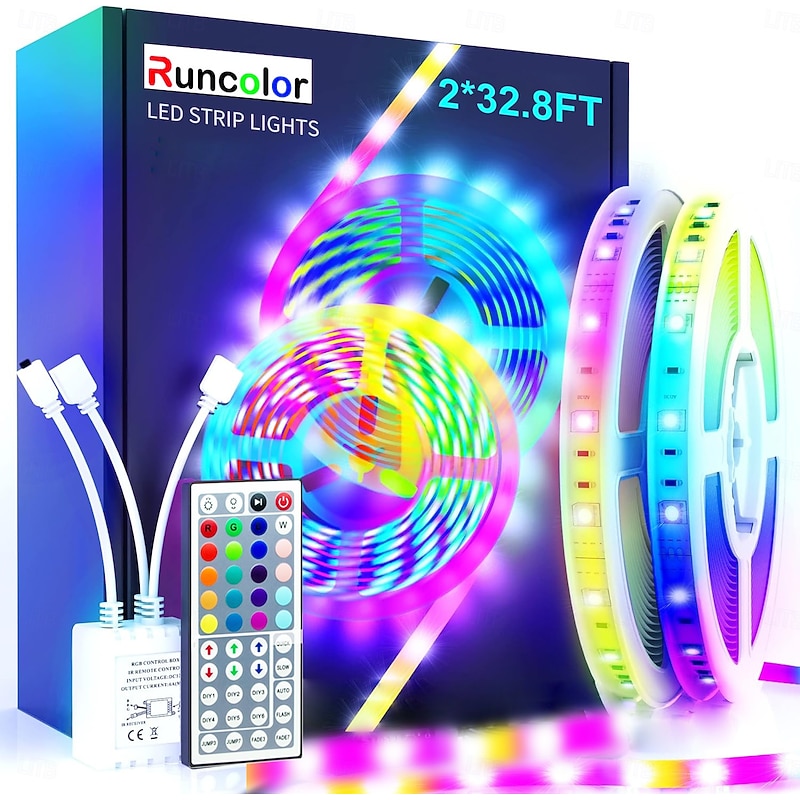 20m 65FT LED RGB Light Strip SMD 5050 Waterproof IP65 Flexible with IR 44 Key Controller for TV Bedroom Party Home Decration 360LEDs 10mm 2x32.8FT 2