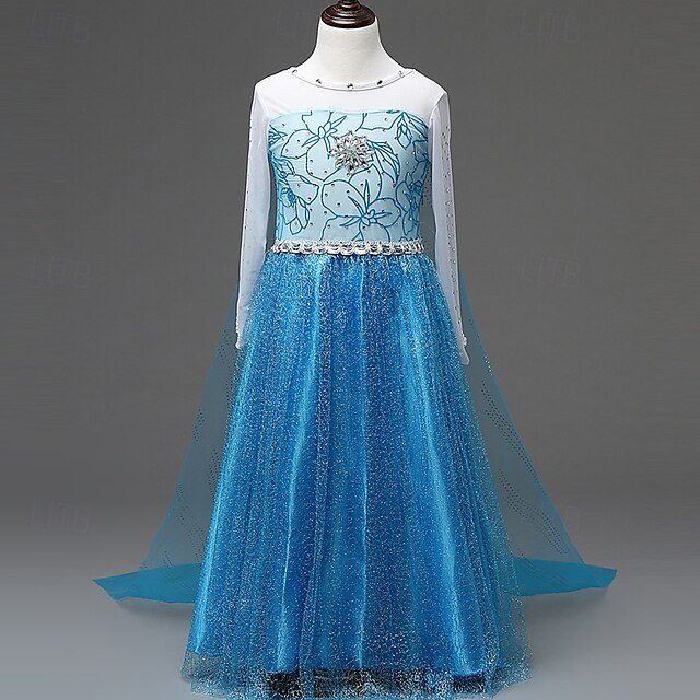 More information about Kids Girls' Party Dress Flower Long Sleeve Performance Birthday Sequins Beautiful Cosplay Costume Polyester Maxi Party Dress Tulle Dress Summer 4 years+ Royal Blue Light Blue