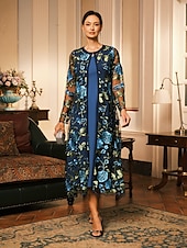More information about Women's Midi Dress Sheath Dress Dress With Jacket Elegant Cocktail Semi Formal Formal Party Wedding Guest Regular Fit Floral Long Sleeve Crew Neck Blue Spring Fall Winter