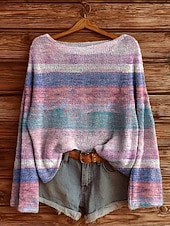 More information about Women's Sweater Casual Soft Striped Stylish Modern Long Sleeve Crew Neck Regular Tops Daily Holiday Print Purple Spring Fall Winter