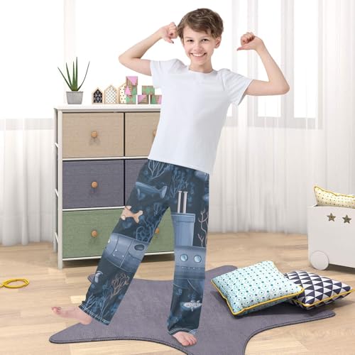 ZZXXB Submarine Coral Print Boys Long Pants Soft Trousers Elastic Waist Kids Lounge Bottoms with Pockets S-XL 1