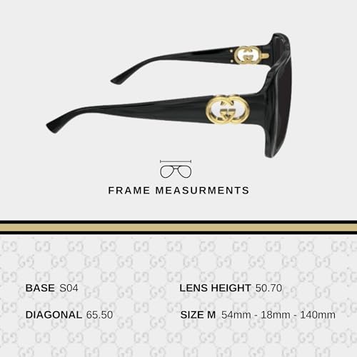 • Detailed Measurements: The Gucci GG1692SA is designed for optimal fit and vision, featuring a lens width of 54, bridge width of 18, temple length of 140, and lens height of 50.7.