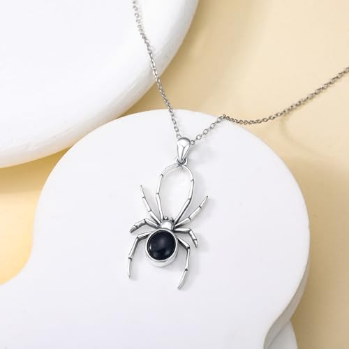 HOT ! Onyx Spider Necklace for Women 925 Sterling Silver Spider Pendant Natural Black Onyx Spider Jewelry Gifts for Women