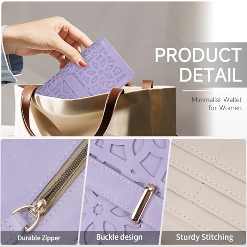 More information about Womens Wallet, RFID Wallet Women Ultra Slim Wallet for Women Thin Ladies Wallet Credit Card Holder Bifold Wallet with Hollow Out Design Gift, Purple