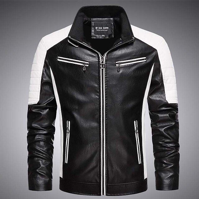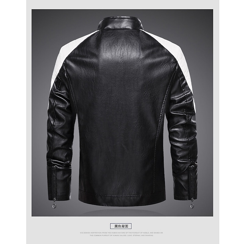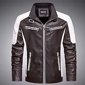 More information about Men's Faux Leather Jacket Motorcycle Jacket Windcheater Jacket Outdoor Camping & Hiking Waterproof Windbreaker Zipper Pocket Fall Winter Color Block Fashion Streetwear Lapel Regular Black Red Coffee
