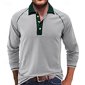 More information about Men's Polo Shirt Golf Shirt Casual Lapel Long Sleeve Fashion Basic Solid Color Button Vintage Style Spring & Fall Regular Fit Dark Brown Black White Burgundy Navy Blue Light Grey Polo Shirt