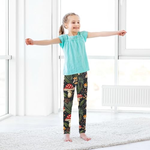 Wusikd Forest Mushrooms Girls' Leggings Toddler Doodles Kids Yoga Pants Dance Active Tights 4T 7