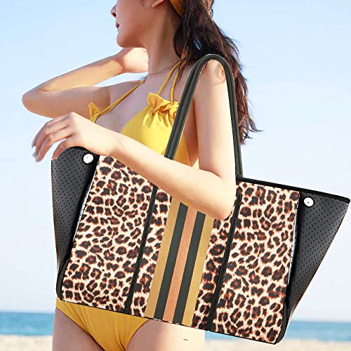 HOT ! Neoprene Tote Bag, Beach Bag Waterproof Sandproof, Tote Bag for Women, Large Tote Bag with Portable Wallet for Beach, Swimming, Gym bag, Travel bag (Leopard Print)
