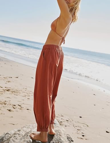 SCUSTY Womens Baggy Wide Leg Pants Cotton Linen Casual Elastic Waisted Palazzo Harem Beach Trousers with Pockets 5