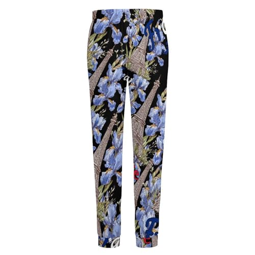 HOT ! Eiffel Tower Iris Flowers France French Flag Men's Pajama Bottoms Sleep Lounge Soft Comfy Pants Sleepwear