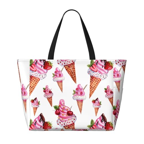 HOT ! Pink Summer Ice Cream Large Beach Bag Waterproof Sandproof Swim Tote Pool Bag For Women With Zipper
