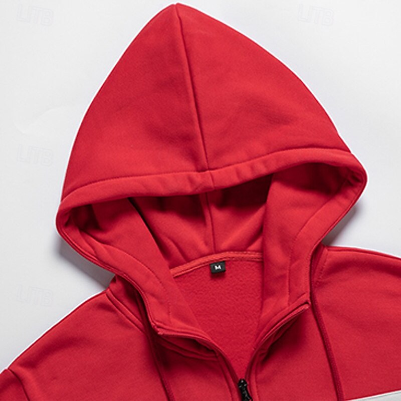 More information about Men's Hoodie Full Zip Hoodie Pullover Hoodie Sweatshirt White Red Blue Khaki Hooded Plain Patchwork Sports & Outdoor Daily Streetwear Streetwear Cool Designer Spring & Fall Clothing Apparel Hoodies