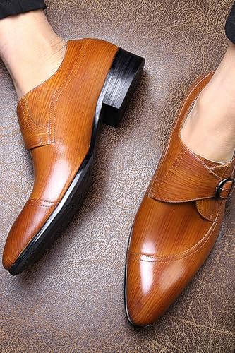 Santimon Men's Genuine Leather Monk Strap Dress Shoes - Classic Pointed Toe Oxfords for Business Formal & Wedding - Buckle Closure Dress Shoes 7