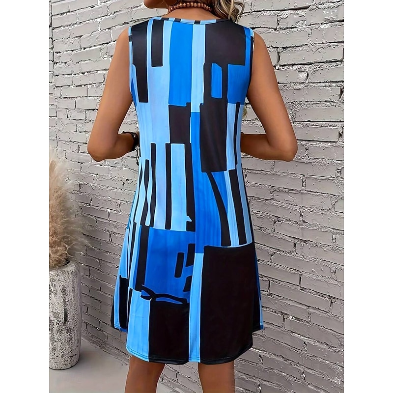 Women's Mini Dress Sundress A Line Dress Summer Dress Vacation Casual Regular Fit Graphic Geometric Color Block Sleeveless U Neck Light Brown Blue Summer Spring 2