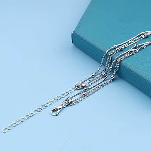 Boho Layered Star Choker Necklace Silver Star Pendant Necklaces Layering Satellite Chain Necklaces Outline Star Necklace Chain Jewelry for Women 7
