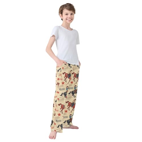 Western Cowboy Riding Horse Pattern Pajama Pants Long Soft Sleep Pants Elastic Waist PJ Bottoms 6-14 Years 1